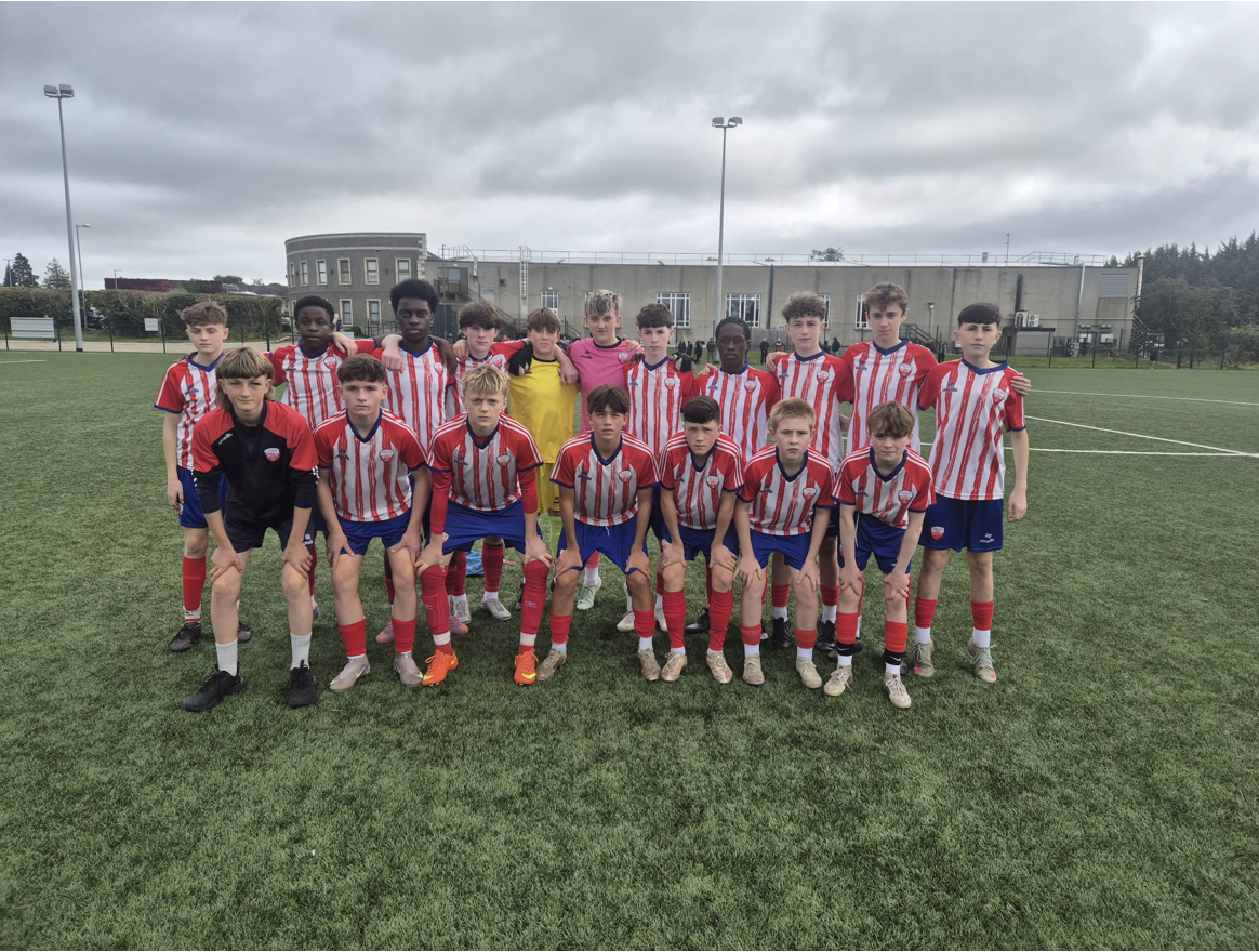 Our MU14s played out an entertaining game in Kildare on Sunday. We got off to a fantastic start with three goals in the opening third of the game. Gabriel Nseka grabbed our first after just 8 minutes assisted by Marco Lopez. We doubled our lead on the half hour mark from the penalty spot with Liam McCague converting the spot kick. Seven minutes later we were awarded our second penalty of the game and this time Fionn Kennedy dispatched the penalty.